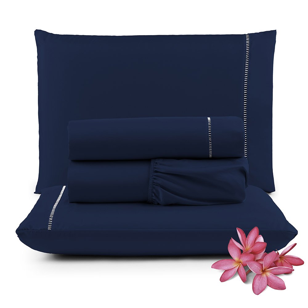 Jogo de Lençol Primor Queen 4 Peças Percal 400 Fios Ponto Palito - Azul Marinho - 100% Poliéster