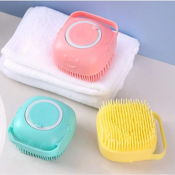 Oferta Esponja Escova De Silicone Para Banho Com Dispenser Shampoo Sabonete Crianças Adultos e Pets Multicolorido