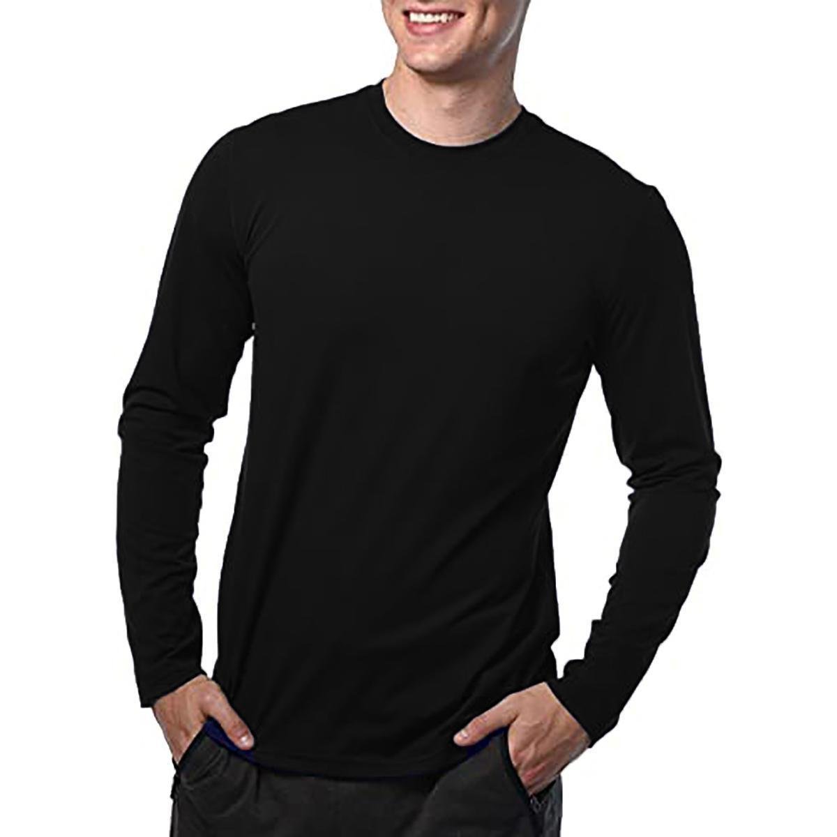 Camiseta Manga Longa Algodão Camisa Comprida Uniforme Lisa Preta