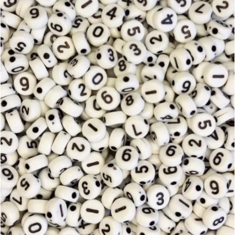 Miçanga Infantil Número 0 a 9 Branco Letra Preto Entremeio 7mm Furo Passante Para Pulseira