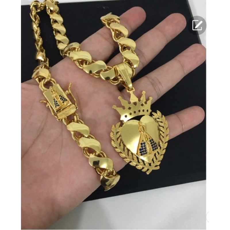 corrente friso s 12mm mc poze pingente nossa senhora aparecida liga de moeda antiga banhado a ouro 18k 10 milésimos