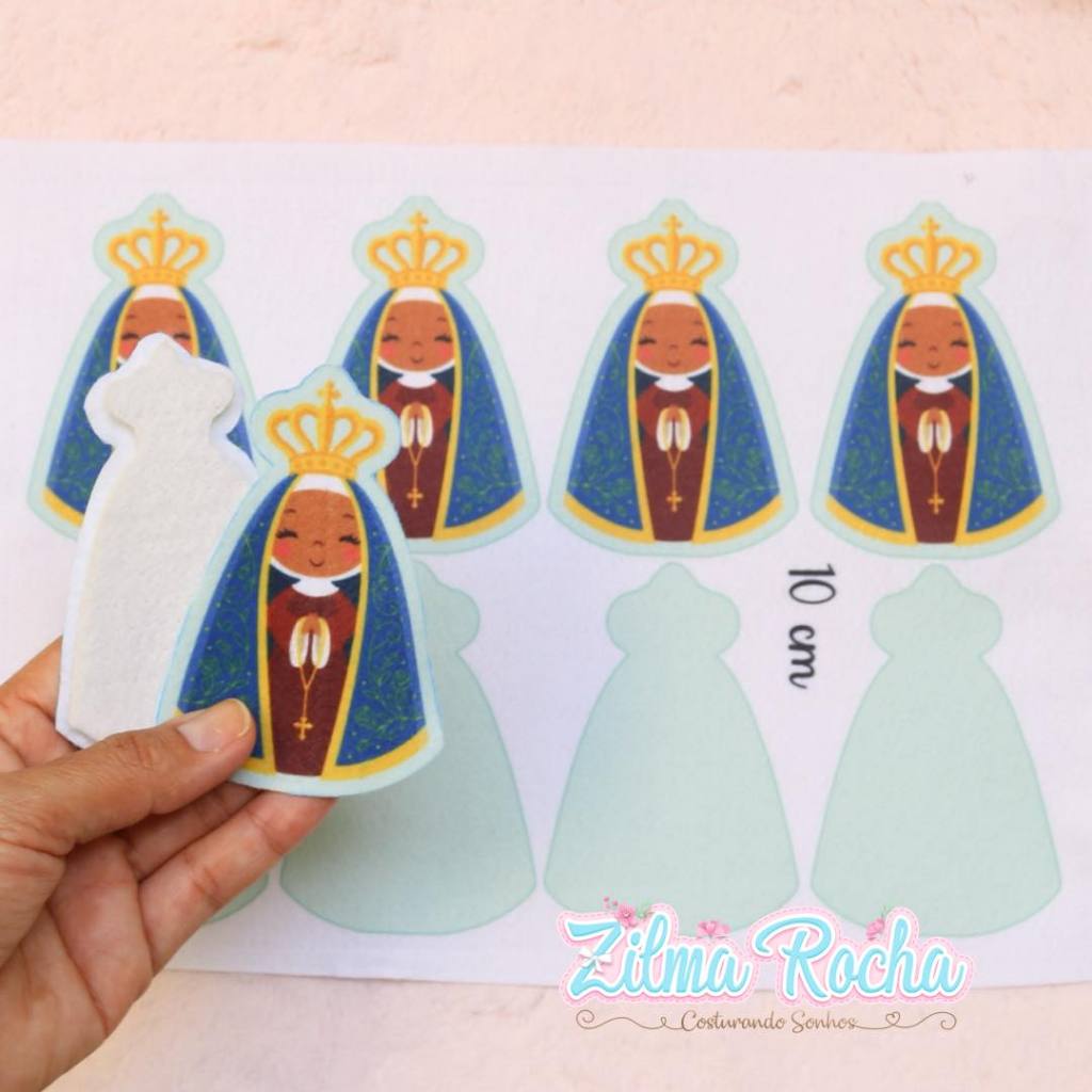 Feltro Estampado Para Chaveiro Nossa Senhora Aparecida com 10 cm - Para Confecção de 4 Unidades + Forrobel Para Estruturar