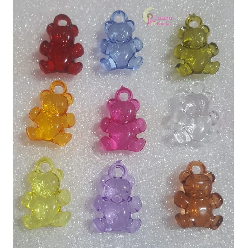Pingente de Ursinho em Acrílico Colorido - 2cm - pacote com 30 unidades