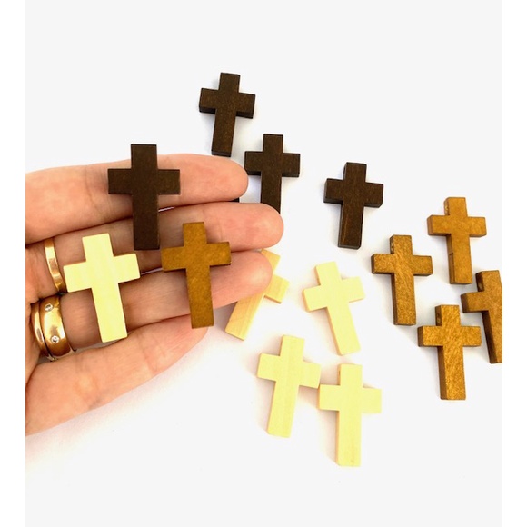 Cruz 20 x 30 mm em Madeira com furo Passante (10 unidades)