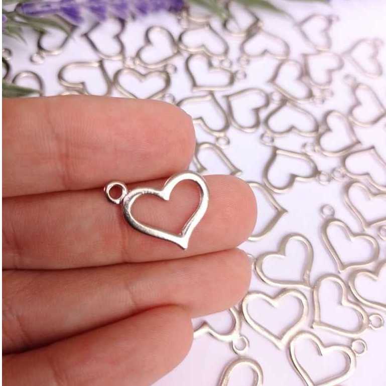 30 Pingentes Coração em metal Niquel - Pingente para Artesanato e acessórios