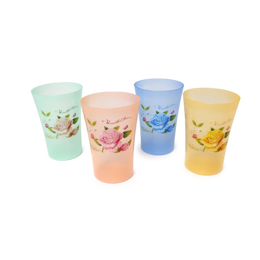 Conjunto de Copo Plástico Flor com 04 Unidades - 400 ML