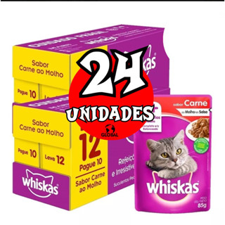 Kit 2 Caixas Leve 12 Pague 10 Sachê Whiskas Carne ao Molho Para Gatos Alimento Úmido