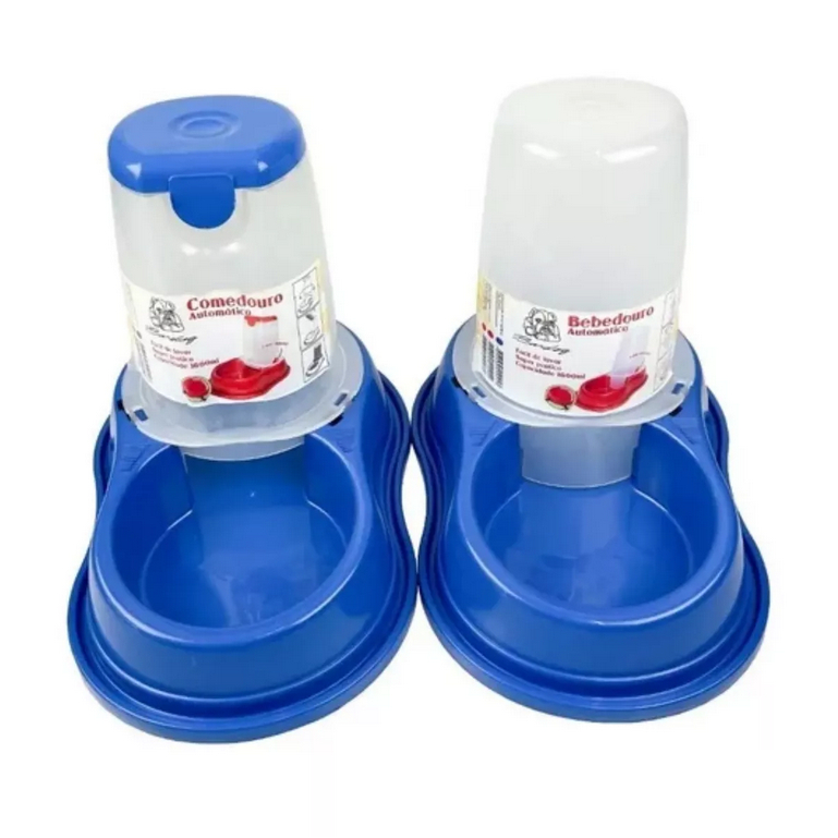 Kit Comedouro e Bebedouro Automático Com Trava Recipiente Pote Para Ração Comida Gato Cachorro