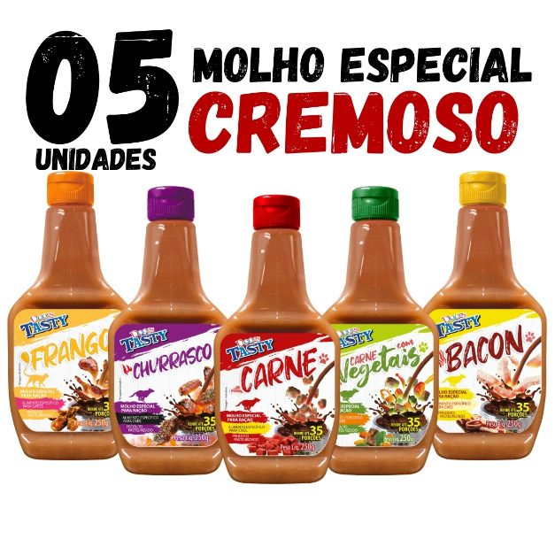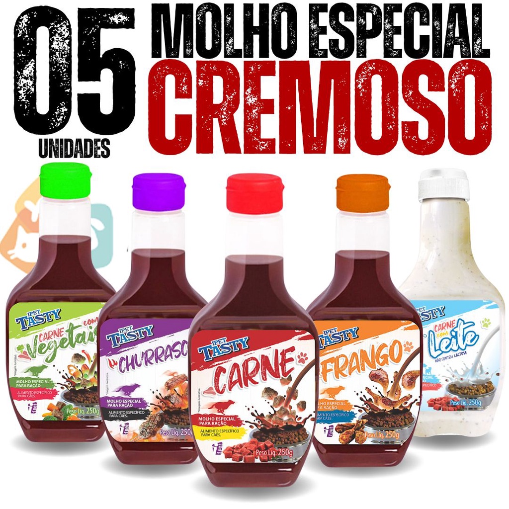 Kit 5 Unidades de Molho Especial Para Ração Tasty Para Pet Cachorro 250g Ipet Vários Sabores