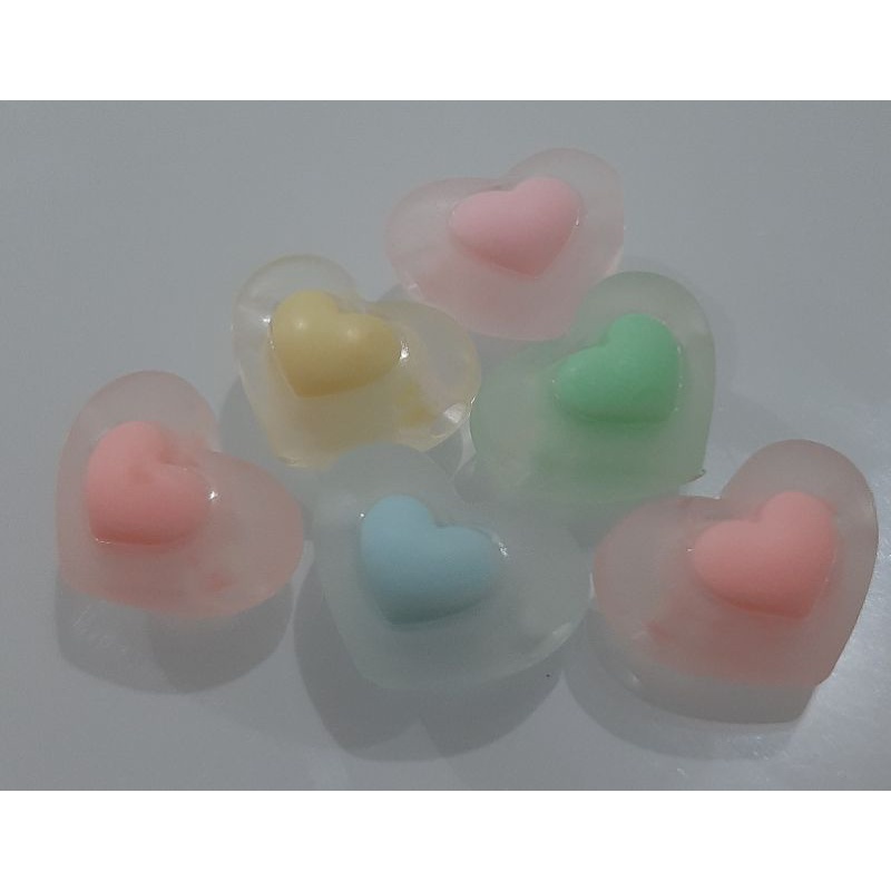Miçanga Entremeio coração fosco com miolo colorido 13x17mm com 10 unidades