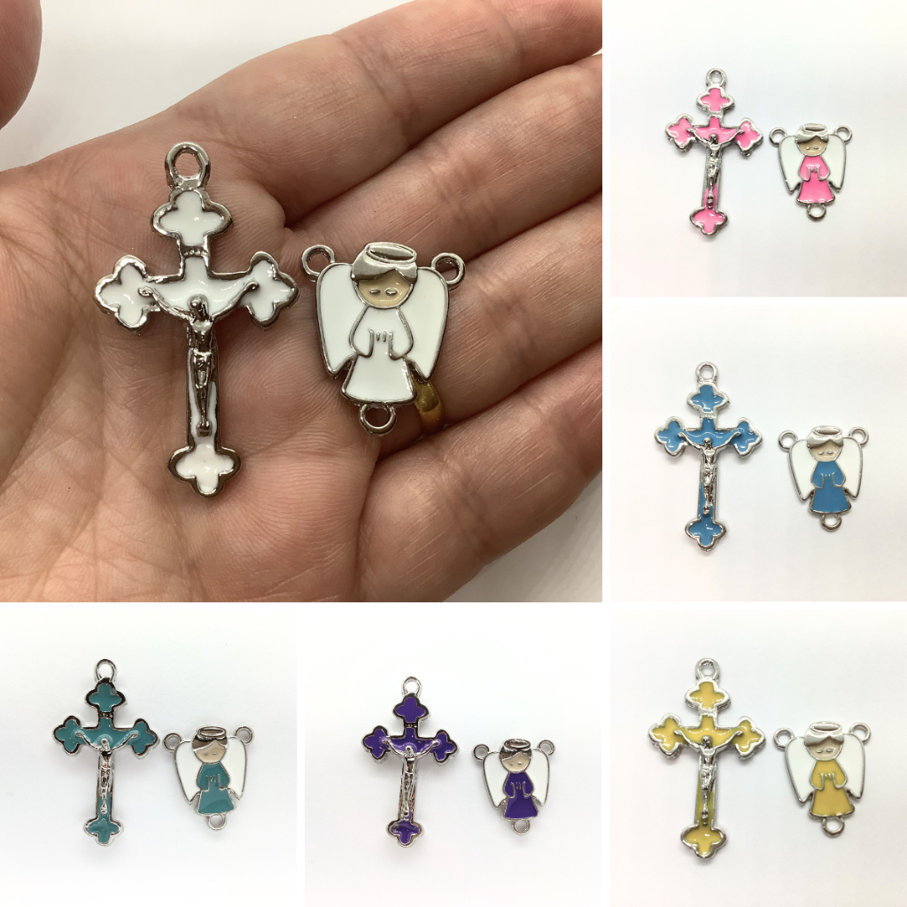 Cruz + Entremeio Metal Para Terço Infantil - O Par