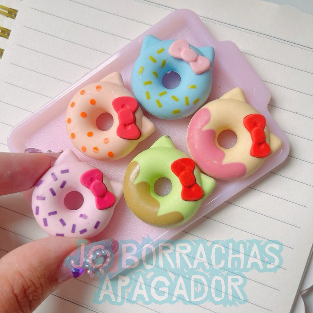 Kit 06 Borracha Gatinho Donuts Fofa Colorida Criativa Kwaii apagadores