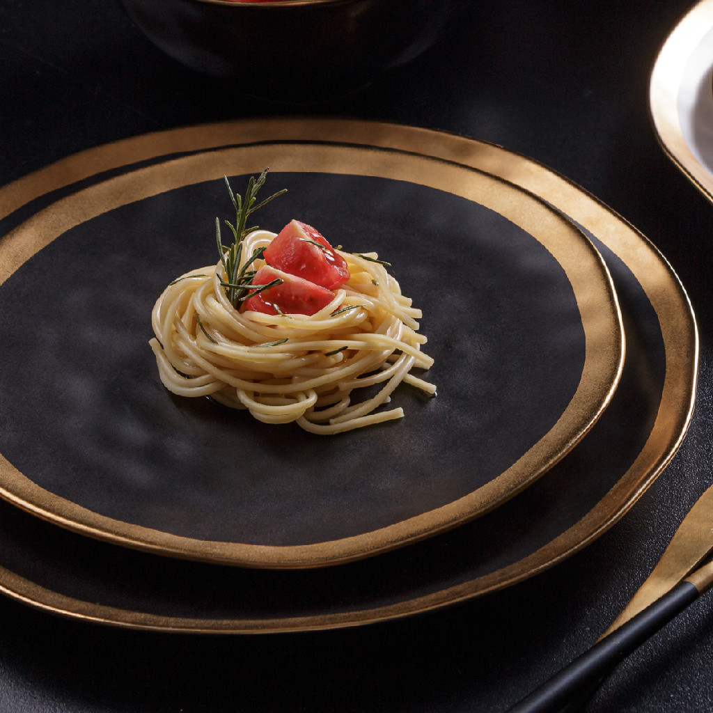 Prato de Jantar De Cerâmica Cronus Luxo Preto 27cm Lyor