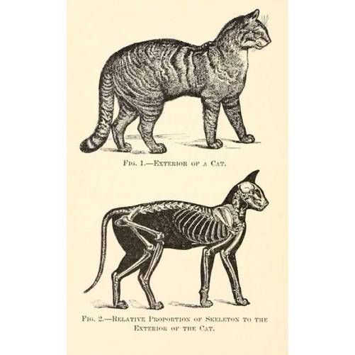 Placa Decorativa Quadro Poster Vintage Anatomia Medicina Veterinária Gato Ilustração Vitoriana Esqueleto