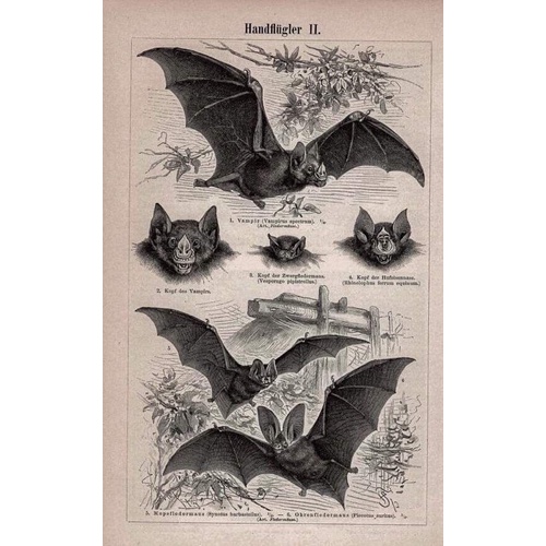 Placa Decorativa Quadro Poster Vintage Anatomia Veterinária Morcego Antigo Gótico Goth