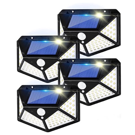 kit 4 Luminária Solar Com Sensor Jardim Prova D'Água Led Solar 100 Led