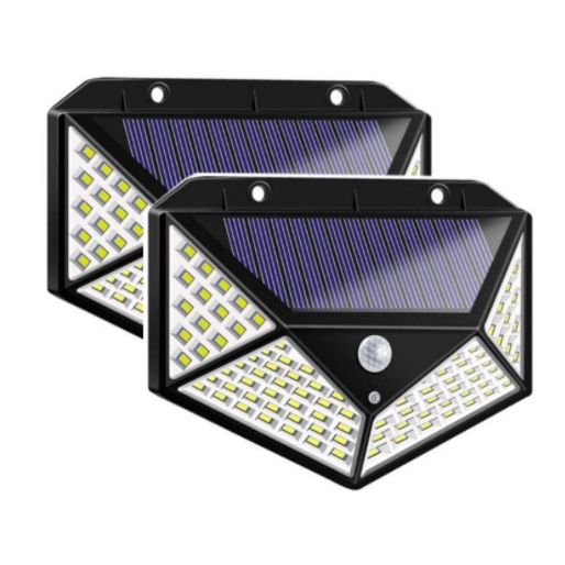 KIT Luminária 100 LED Parede Solar Com Sensor Jardim Externa Prova D'água