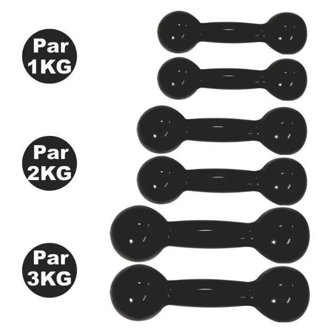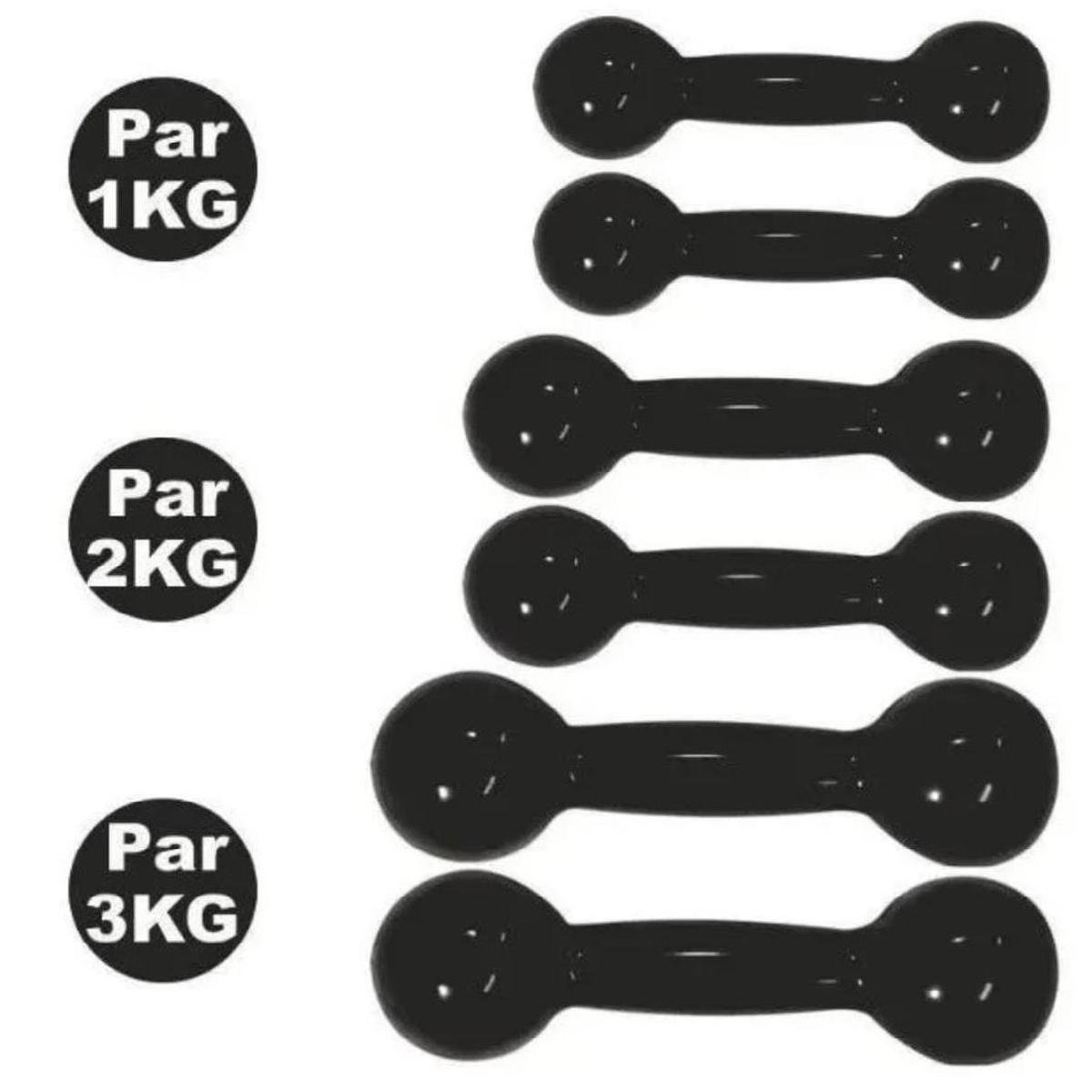 Kit 3 Pares Halteres Emborrachados Pesos 1kg, 2kg E 3kg
