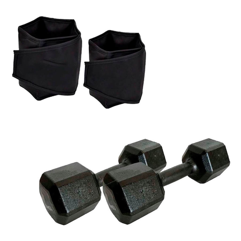 Kit Fisioterapia - Par De Caneleira 2kg + Par De Halter sextavado pintado 1kg