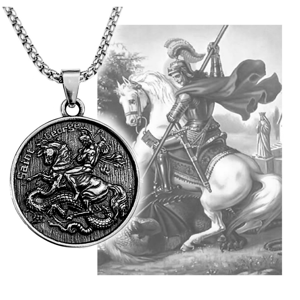 Corrente Colar Masculino Pingente Medalha de São Jorge da Capadócia Aço Inoxidável 316l Cirúrgico Amuleto da Sorte Proteção