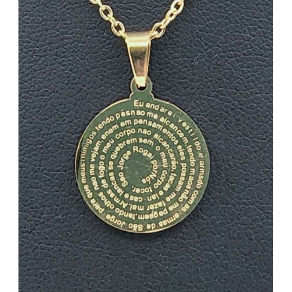 colar Aço Inox 316L /corrente com pingente Medalha São Jorge Oração Dourado