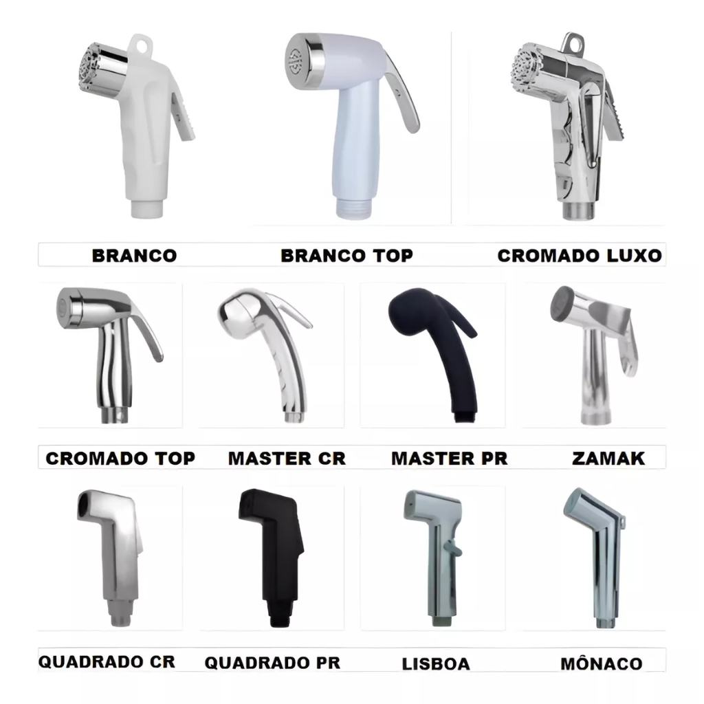 Gatilho Para Ducha Higiênica Chuveirinho LUXO TOP ABS BRANCO CROMADO OU PRETO FOSCO (ESCOLHA MODELO)