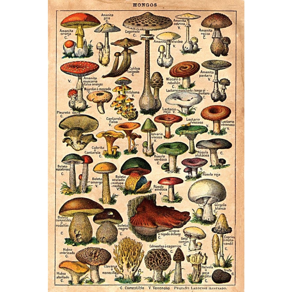 Placa Decorativa Quadro Poster Vintage Biologia Cogumelos Botânica Ilustração Antiga