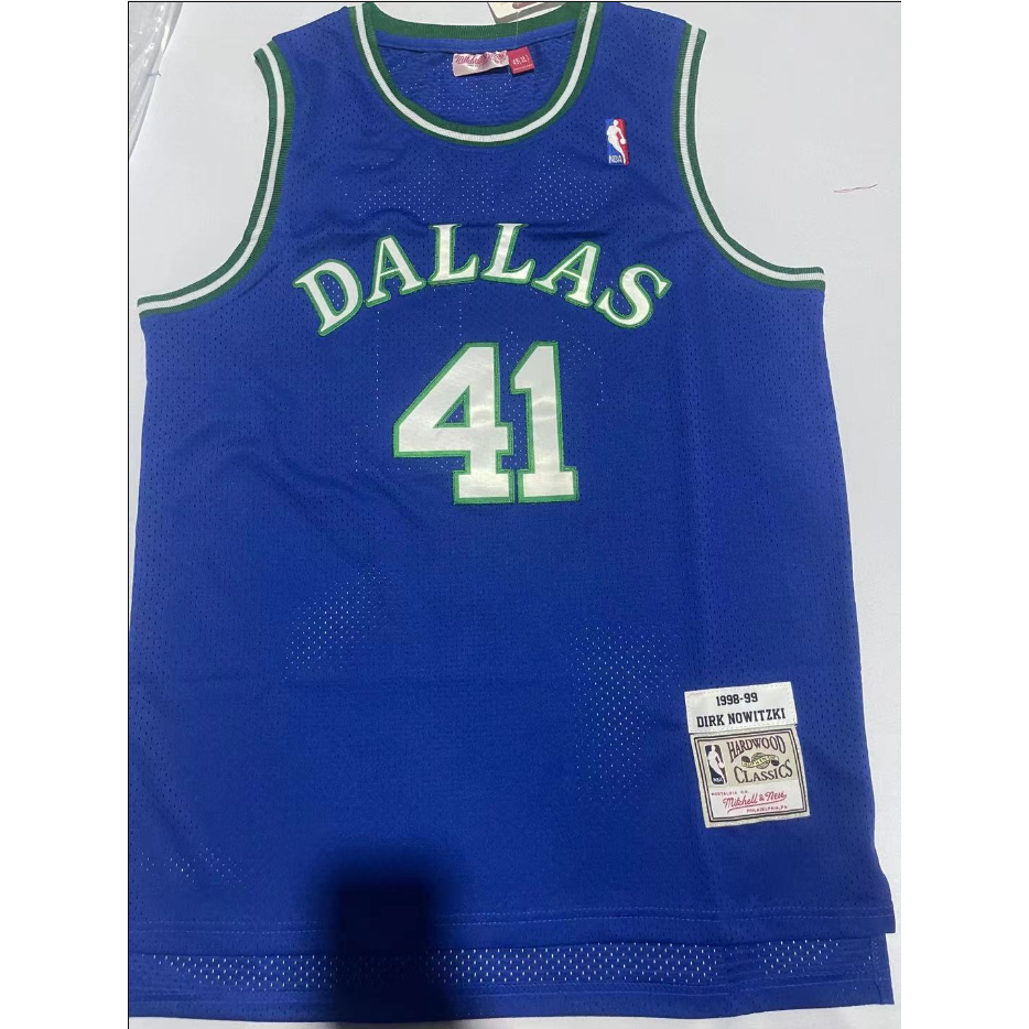 Novo Nba Masculino's Dallas Mavericks 41 Dirk Nowitzki Bordado mn retro Camisas De Basquete Camisa Azul
