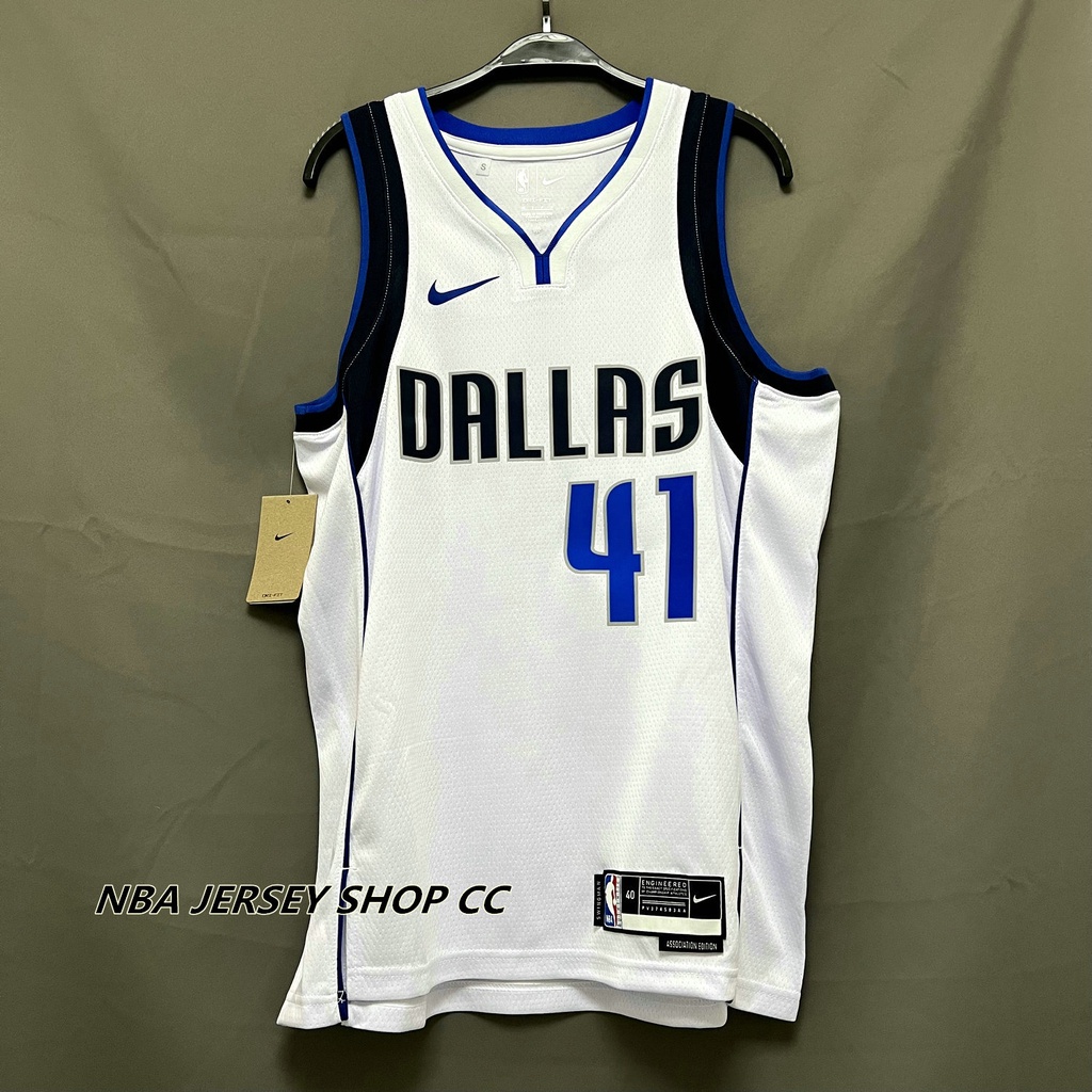Novo Original Masculino NBA Dallas Mavericks # 41 Dirk Nowitzki Jersey Branco Comprimido Por Calor