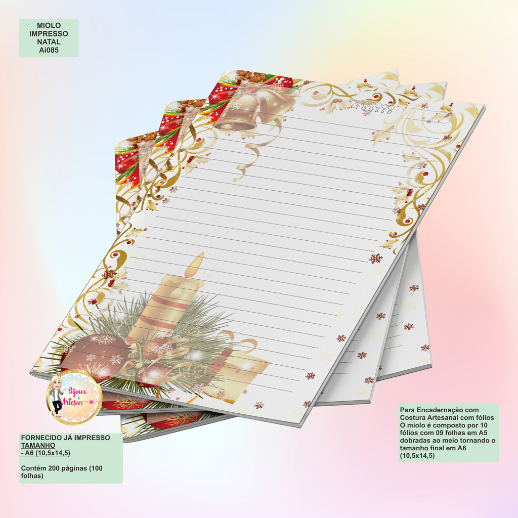 100 Folhas Natal - Miolo Impresso Caderno / Diario / Bloco / Papel Carta (refil) A6-A5-A4