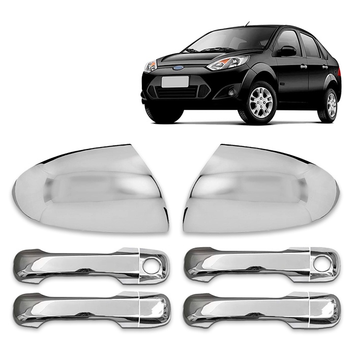 Jogo Aplique de Maçaneta + Par Aplique Retrovisor Fiesta Rocam 2003 2004 2005 2006 2007 2008 2009 2010 2011 2012 2013 2014 Kit Cromado