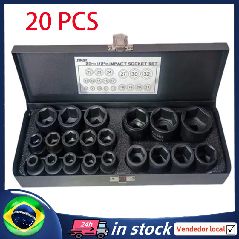 [BR Envio Em 24h] Kit De Conjunto De Chave De Soquete De Impacto Curto 8 A 32 Mm 1/2 Hex