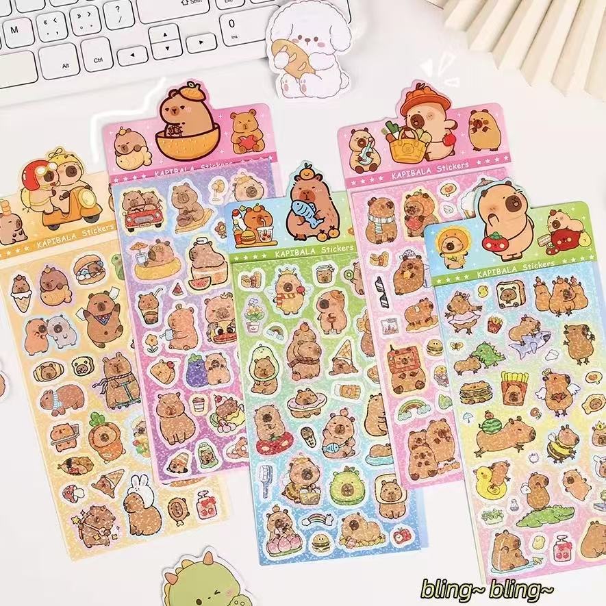 Kit 3/6/10 Folhas Adesivo De Laser De Capivara De Desenho Animado Para Decoração De Presente(Aleatório)
