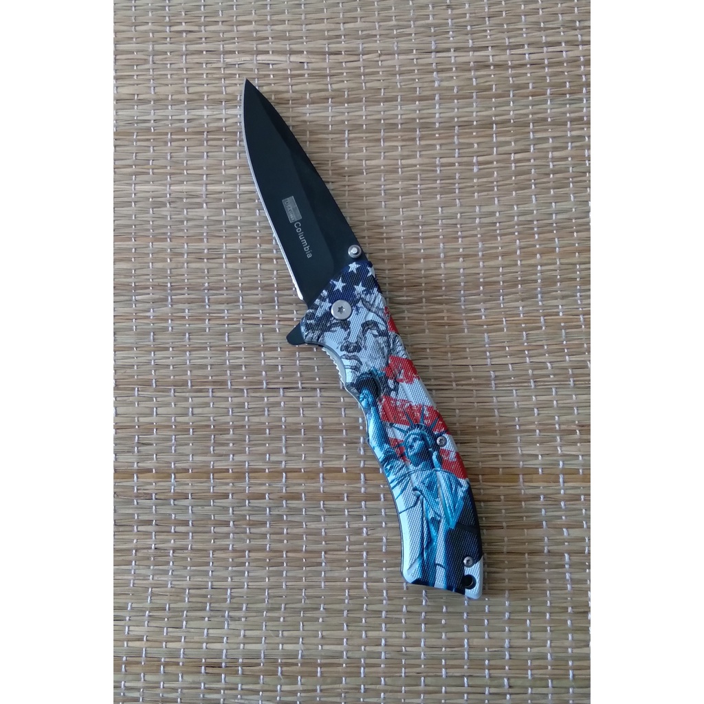 CANIVETE DE BOLSO AUTOMÁTICO RETRÁTIL AÇO INOX PRETO COM AZUL TÁTICO MILITAR CAÇA PESCA CAMPING TAUE 821