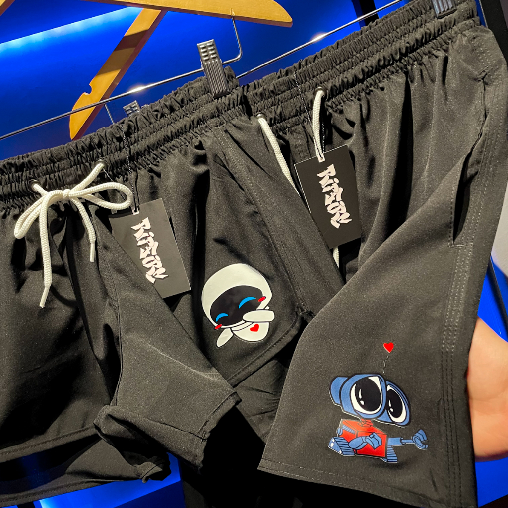 Kit Casal Conjunto Wall-E Eva Pixar Combinando Mozão Shorts Masculino e Feminino Elastano