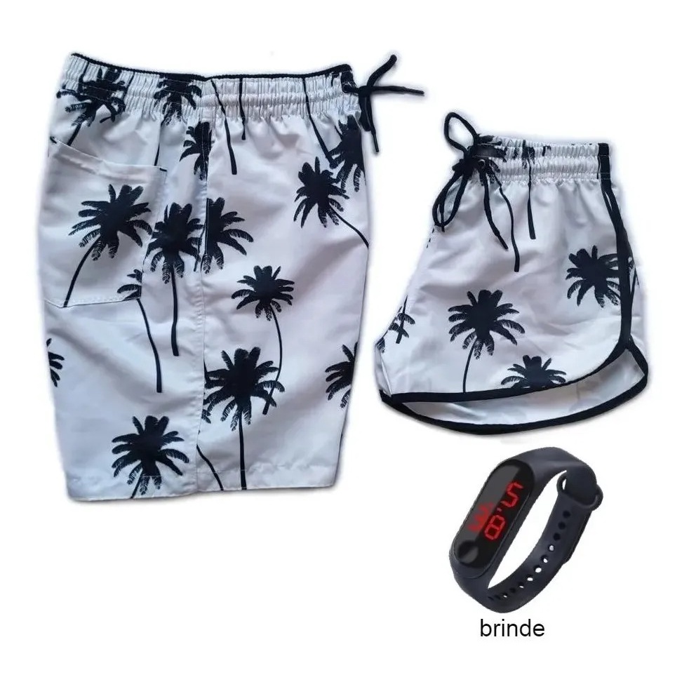 Kit Casal Short Moda Praia Conjunto de Casal Bermuda Tactel Combinando