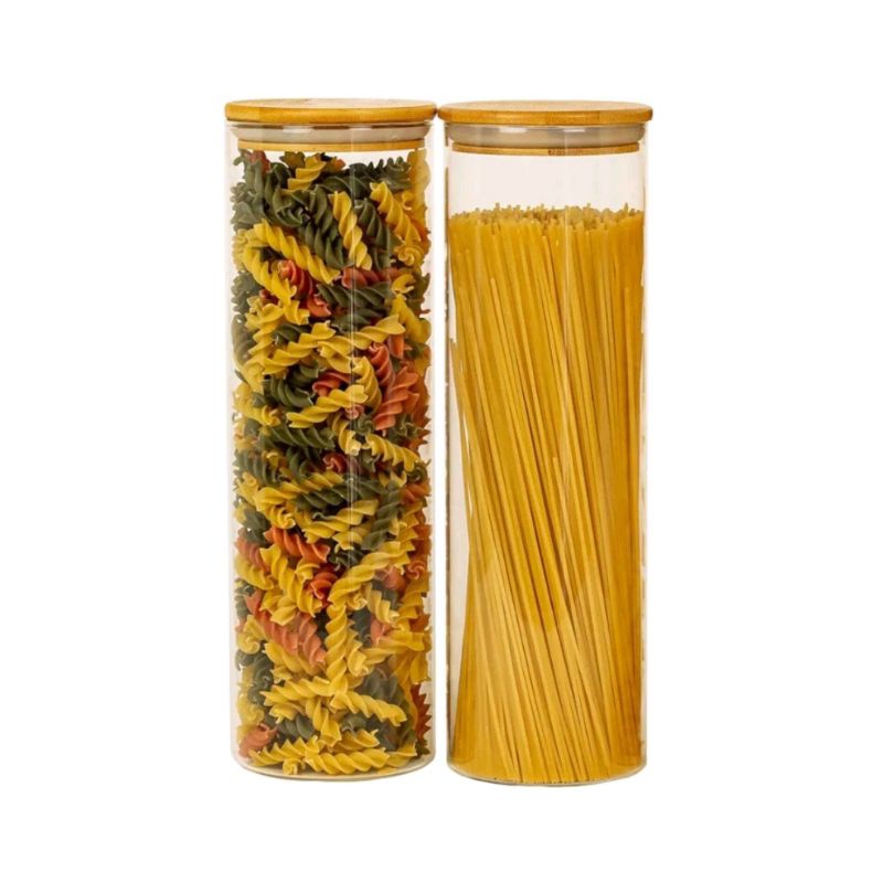 Kit 2 Potes Hermético Vidro com Tampa de Bambu 1,8L | Alimentos Mantimentos Macarrão