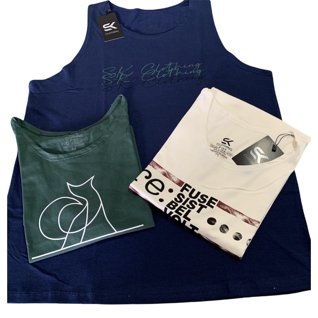 Kit 3 Camisa Gola V Masculina Original Sk Clothing P Ao Gg E Plus Size (g1, G2, G3, G4, G5, G6, G7, G8, G9) Camiseta 100% Algodão Tamanho Grande T-shirt Tamanho Especial