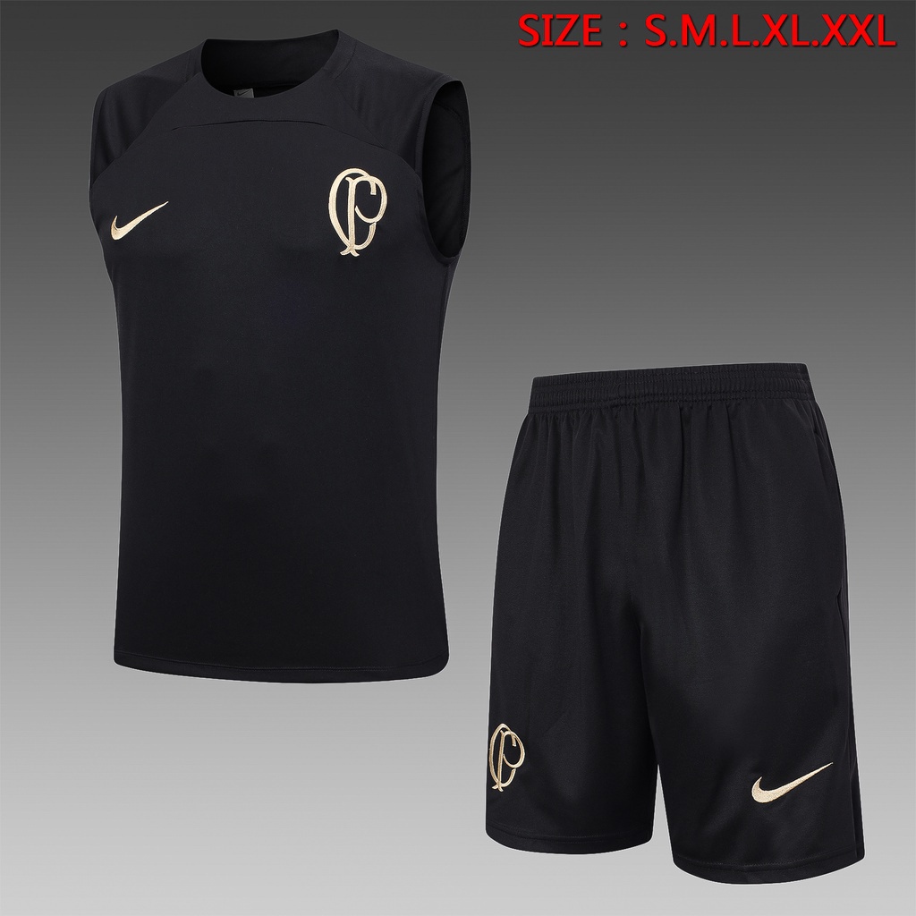 2023/24 Corintiano Colete De Futebol Dos Homens Preto Esportes Correndo Shorts Verão Sem Mangas Camisa Esportiva Jacket Set