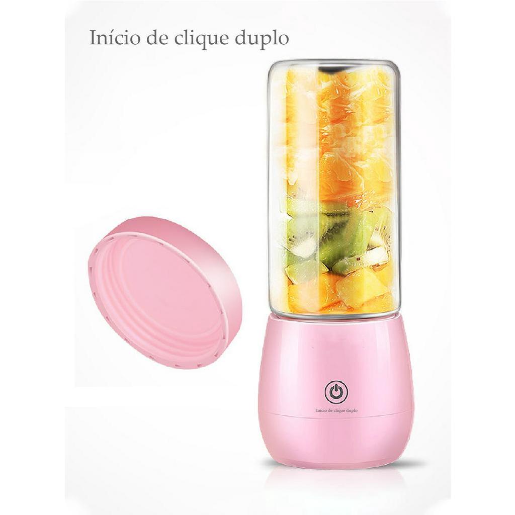 Mini Liquidificador Portátil Vidro 6 Lâminas Suco Gelo 450ml
