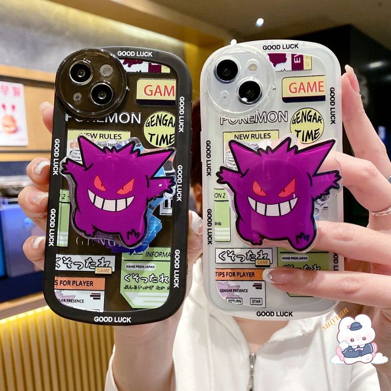 Caixa De Telefone Gengar Japanese Label Compatível Para IPhone 14 11 12 13 Pro Max 14 Plus 11 XS Luxury Japan Cartoon Silicone Transparente Com Suporte Dobrável