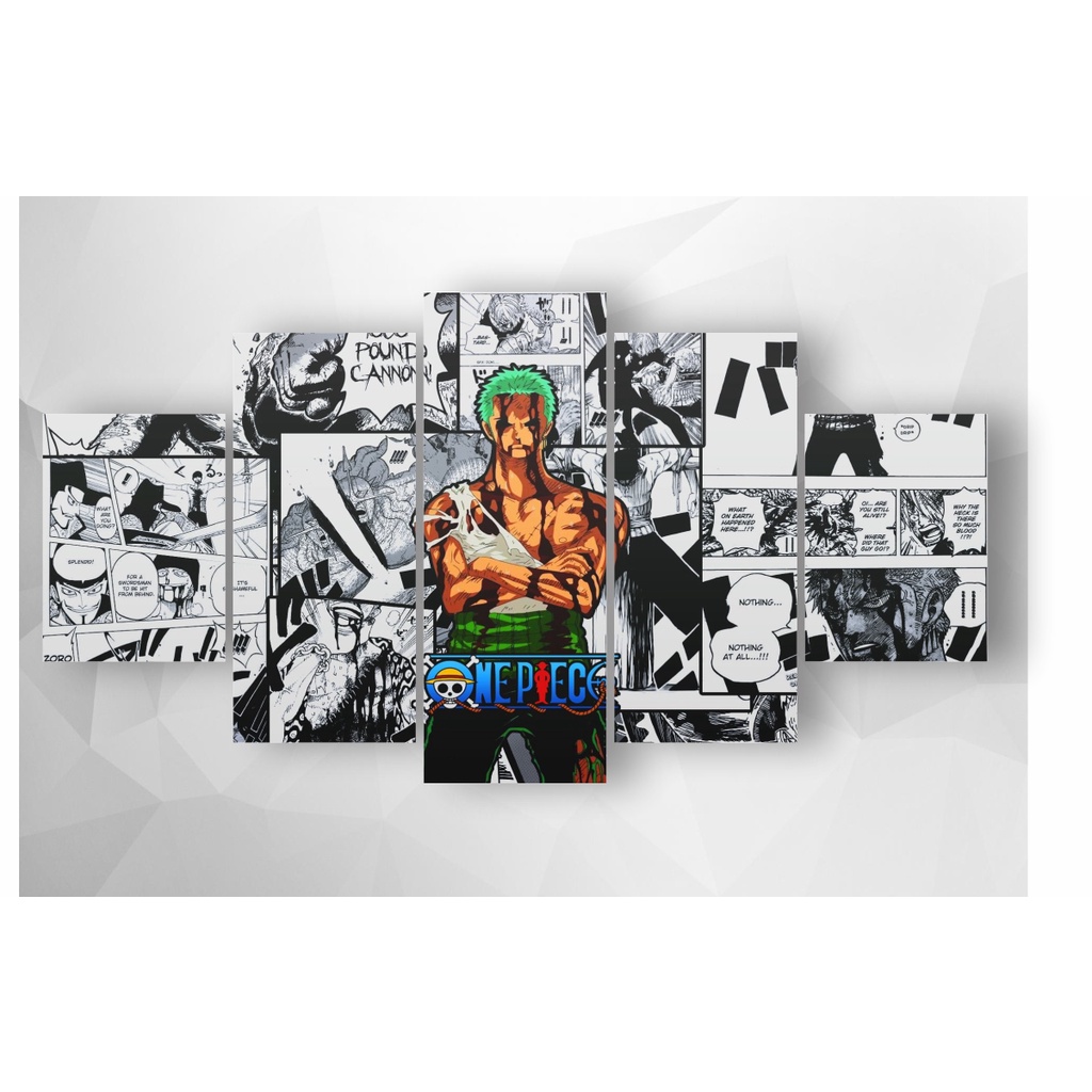 Quadro Placa Decorativa MDF 3mm Zoro One Piece Mosaico 5 placas Adesivado Impressão