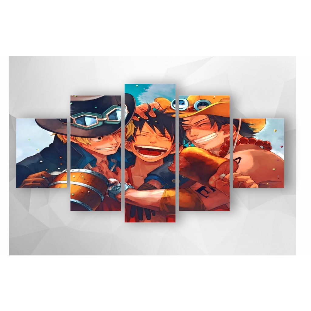 Quadro Placa Decorativa MDF 3mm Luffy Irmãos One Piece Mosaico 5 placas Adesivado Impressão