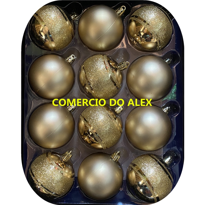 Kit 12 Bolas Enfeite De Árvore De Natal 5cm Mista Lisa Fosca Glitter Para Decoração Natalina