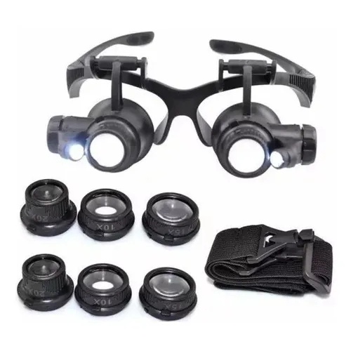 Lupa de Cabeça Óculos 2 Led 5 Lentes Profissional Zoom 3,5x