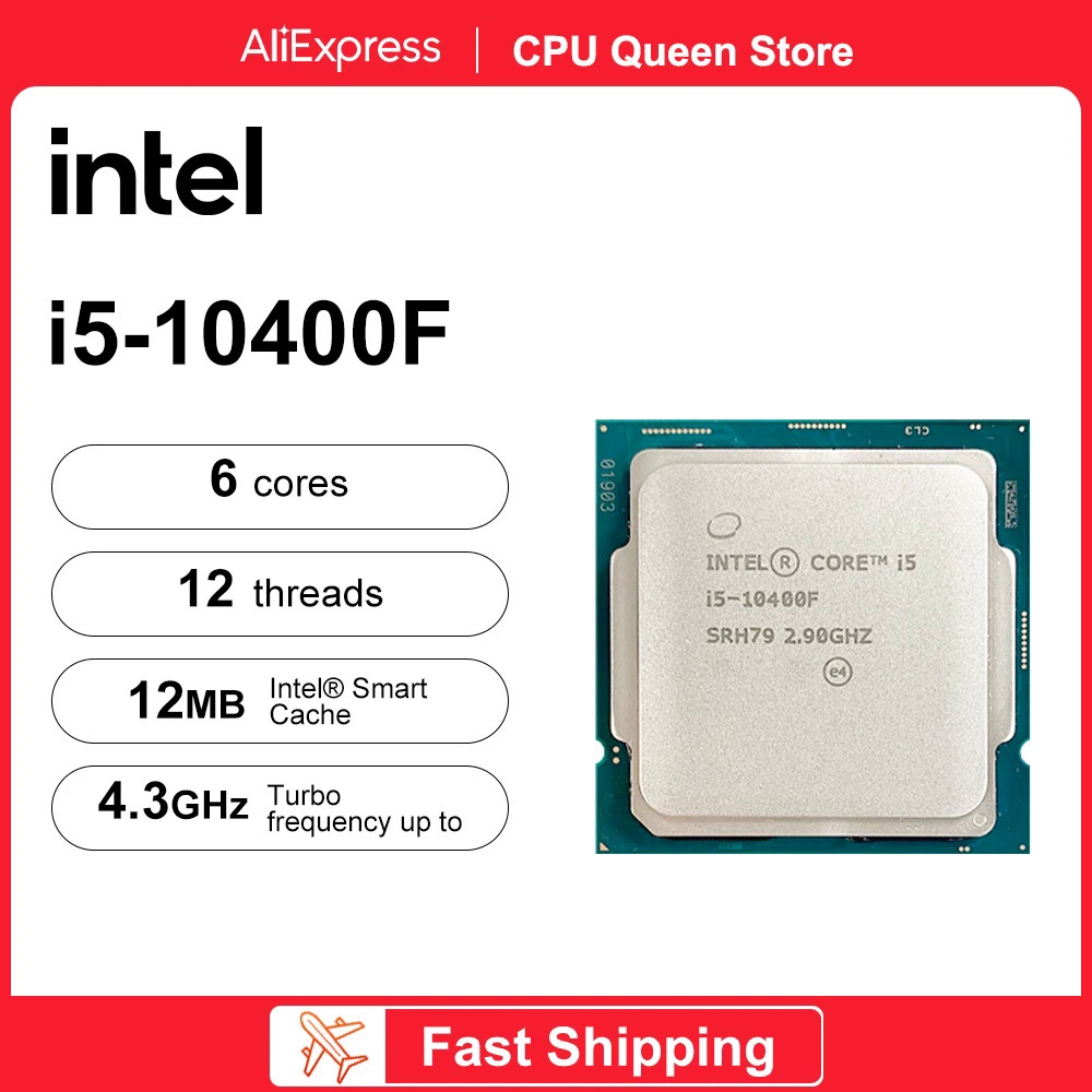 Processador Intel New Core i5-10400F 10th 4.30GHz 6 Core 12 Thread CPU 14NM L3 = 12M Intel LGA1200 Gaming Suporte Z490 Chipsets