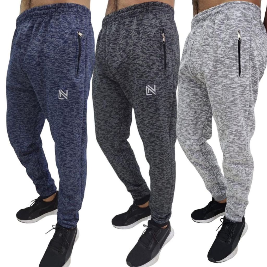 Kit 3 Calças Moletom Masculina Flanelada C/Zíper Esportiva
