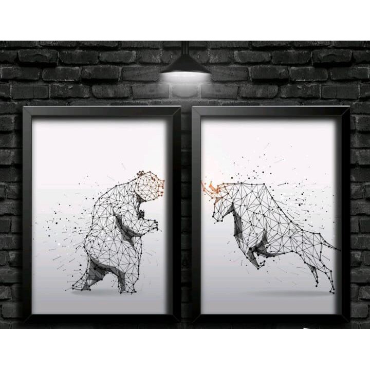 Quadros Decorativos - Urso E Touro Branco E Preto - Mercado Financeiro - Touro Dourado - Trader - Bolsa De Valores - Urso