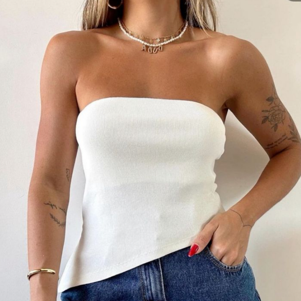 Blusa Feminina Tomara Que Caia Com Bojo e Fenda Estilosa Assimétrica Moda Blogueira Gringa Verão