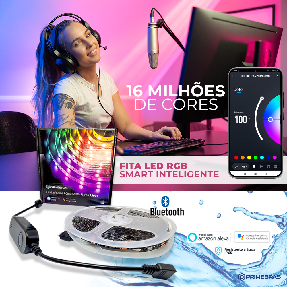 Fita Led 5050 Rgb Smart IP65 a Prova Dagua Wifi Inteligente 5m Alexa Primebras
